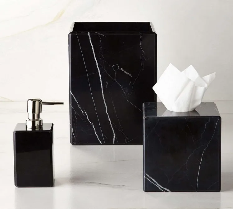 This 100 percent marble bathroom set was designed for durability, functionality, and beauty. matching accessories—like a soap dispenser, toothbrush holder, and tissue box cover—can go a long way in sprucing up your bath. Many stone suppliers publishing black marble bathroom sets products. Set a soothing atmosphere in the bathroom with our practical and trendy accessories: