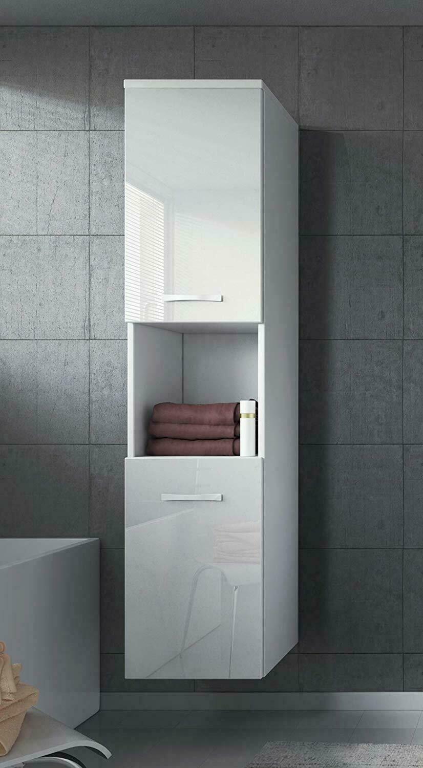 High Gloss White Bathroom Wall Cabinet. Artis white gloss wall hung tall bathroom cabinet 1200 x 350mm. White high gloss tall wall mounted bathroom cabinet storage cupboard furniture.