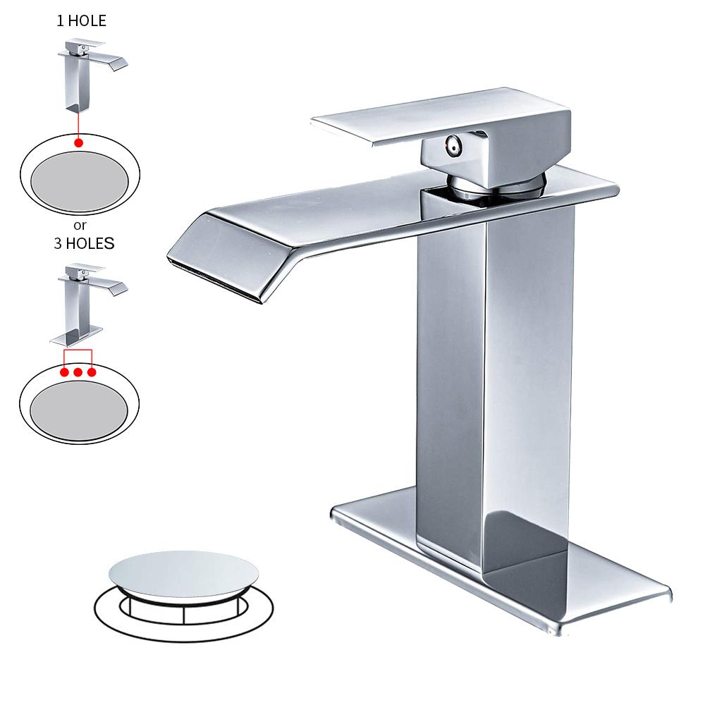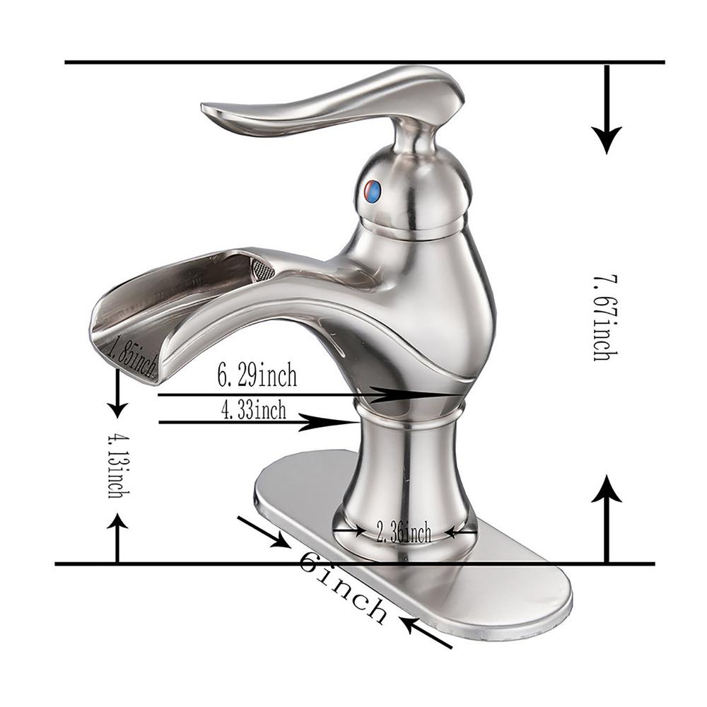 Bwe brushed nickel waterfall commercial bathroom sink faucets single handle hole deck mount lavatory.