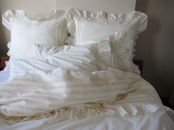 Ivory Ruffle Bedding. Tiny style bumper ties are dainty little ties, that tie into a knot to secure to your crib railings. Offwhite ruffle duvet cover set white bedding ruffle fringe design soft white washed microfiber bedding sets twin 1 ruffled duvet cover 1 pillow sham (twin, white).