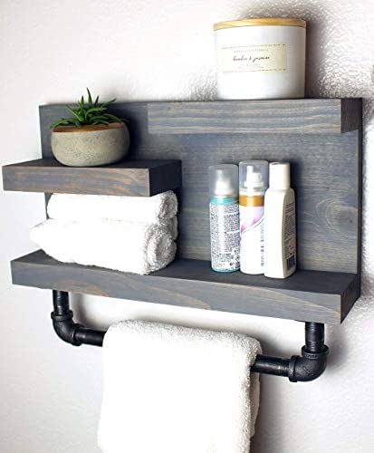 Modern farmhouse style houses have been around for decades, mostly in rural areas. So, let's build a new diy modern farmhouse bathroom vanity! Triangle bathroom shelf with industrial farmhouse towel bar, geometric country rustic storage, modern farmhouse, apartment dorm decor.